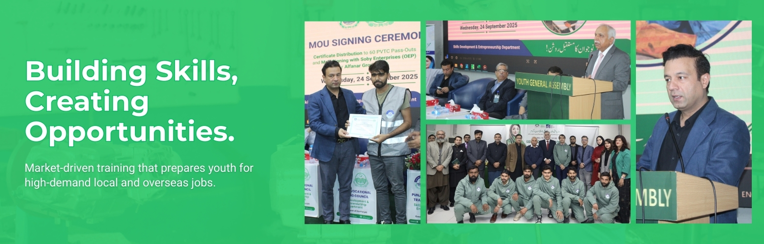 Punjab Vocational Training Council (PVTC) is largest vocational training provider in Pakistan and have presence in all Sub-Districts (Tehsils) of Punjab - Pakistan.